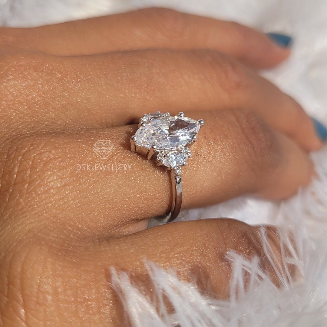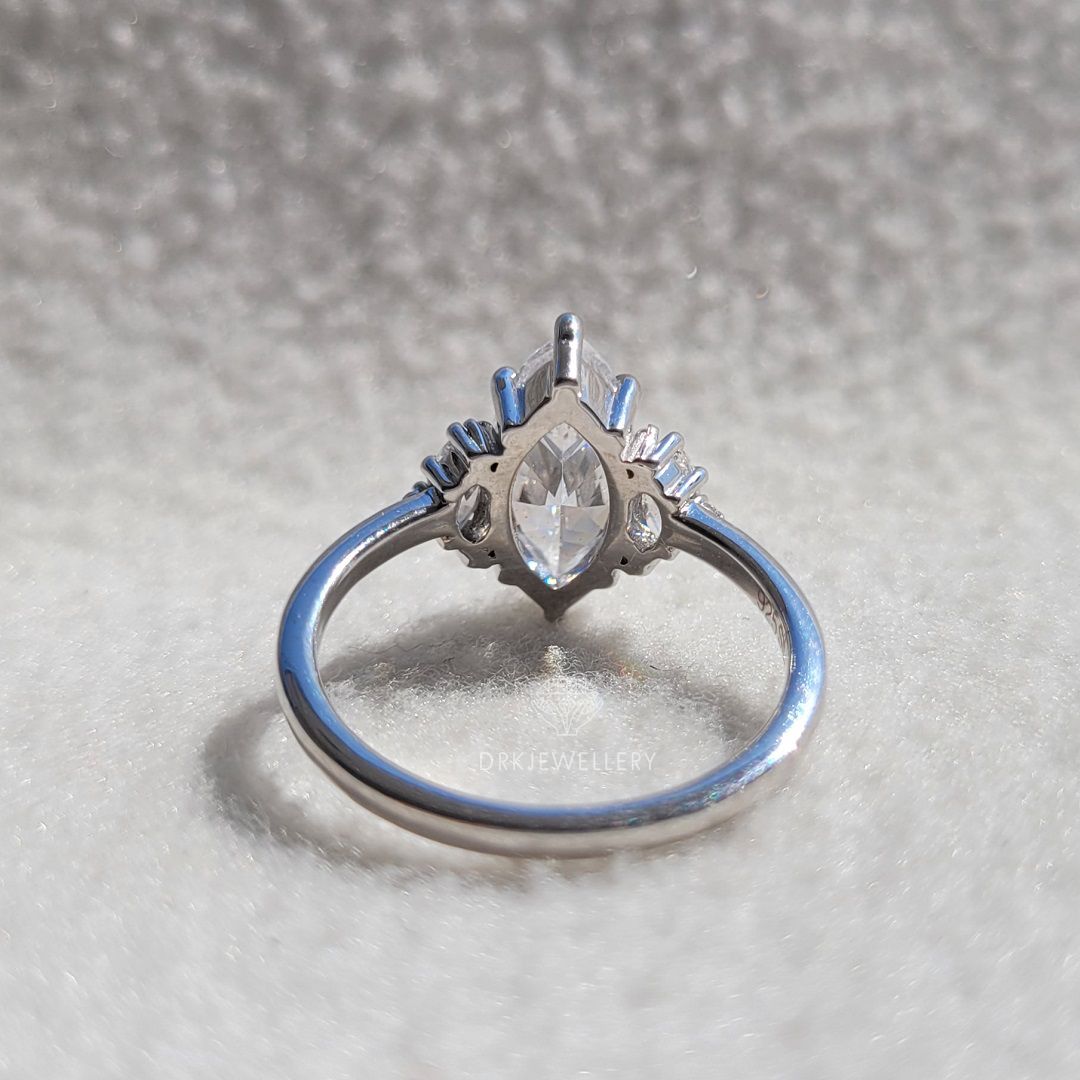 This ring show in picture is vintage engagement ring. Featuring a brilliant 1.63 ct marquise cut moissanite with 12x6 mm size. side 0.32 ct marquise & round moissanite. Crafted in your choice of 925 Sterling Silver or 14K Solid Gold.