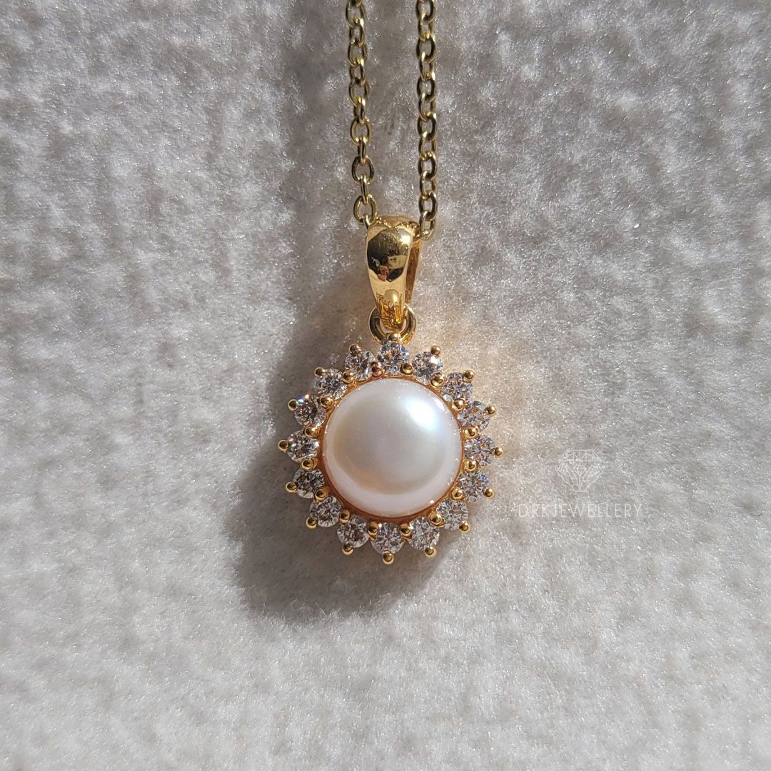 This ring show in picture is Round Cut pearl pendant. Featuring a brilliant surrounded 0.56 ct round cut moissanite Pendant. Crafted in your choice of 925 Sterling Silver or 14K Solid Gold.