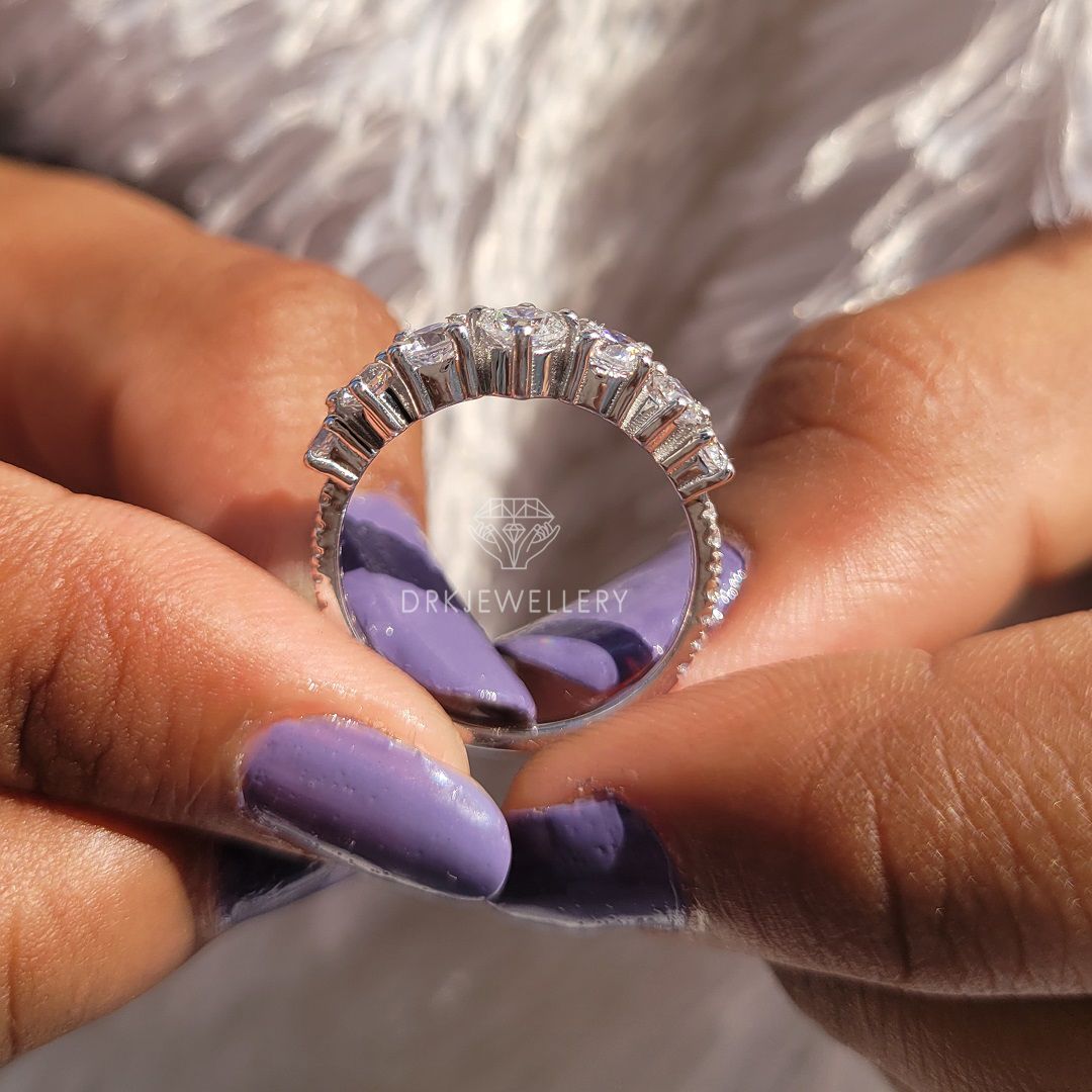 Style: Round cut band, Stackable ring, 5 stone Band, Pave Set Ring, Vintage Ring.