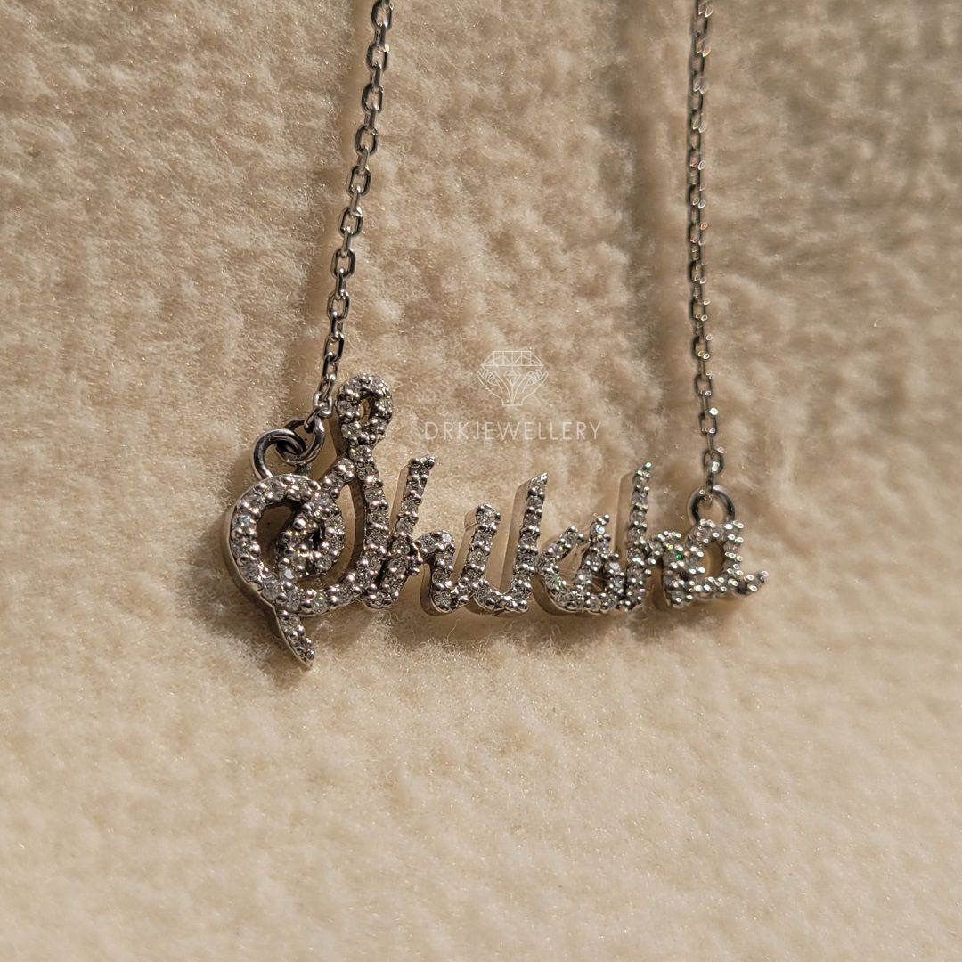 SAKSHI Name Diamond 14K White Gold Custom Pendant